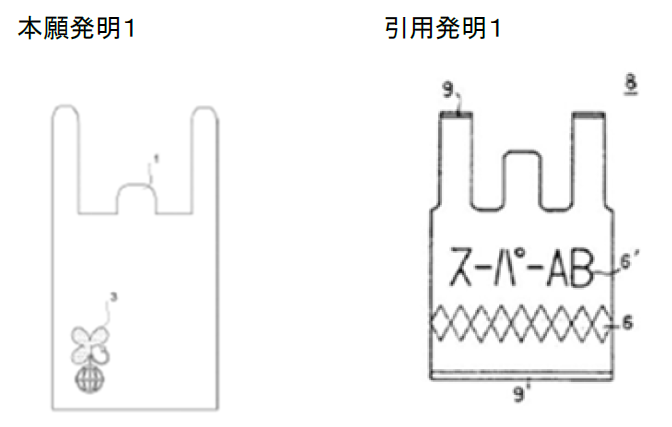 審決は、本願発明1の袋では、インクを用いずにロゴマークを表現したものが「単位エンボス(3)」であり、「袋(1)は、その一部又は全面に1つ又は連続した単位エンボス(3)を有し、前記単位エンボス(3)は、複数の凹凸の列を含み、」であるのに対し、引用発明1の袋では、インクを用いずにロゴマークを表現したものが「梨地部位」であり、「手提げ袋8は、その表面に梨地部位を有し、前記梨地部位は、微少な凹凸が施され、」る点で相違するが、袋の「一部又は全面」にロゴマーク等を表現したものとすることは、当業者が適宜なし得る設計事項であると判断した。