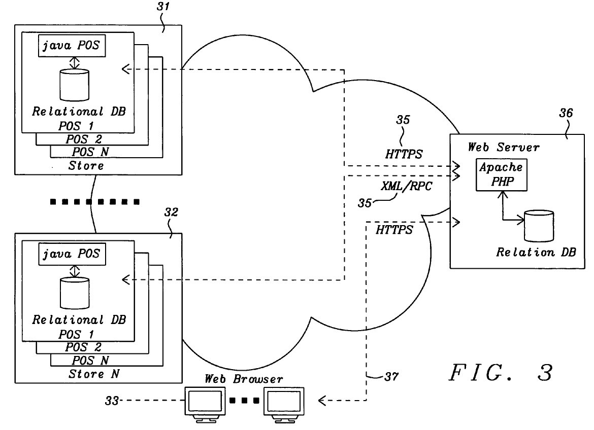 下図は対象特許のウェブベースのPOS(Point of Sale)システムの実施形態を示す図である。